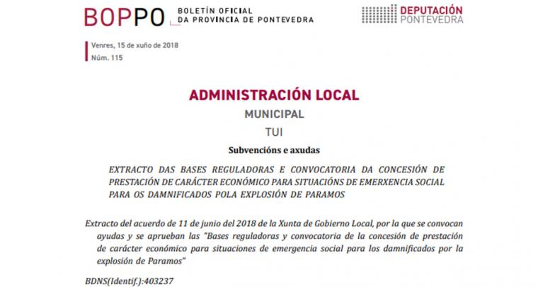 O próximo luns, 18 de xuño, abre o prazo para presentar a solicitude de axudas para os damnificados pola explosión de Paramos que vai conceder o Concello de Tui con cargo ao Fondo...