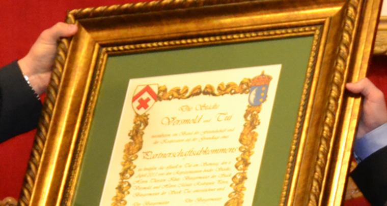 Os municipios de Tui e Versmold renovan este domingo a irmandade entre ambos cando se cumpren cinco anos da sinatura do convenio asinado o 6 de abril de 2013.
