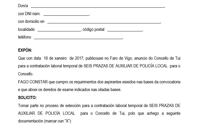 O Concello de Tui abre mañá xoves, 19 de xaneiro, o prazo de presentación de solicitudes para acceder á convocatoria de selección de seis prazas de auxiliares da Policía Local...