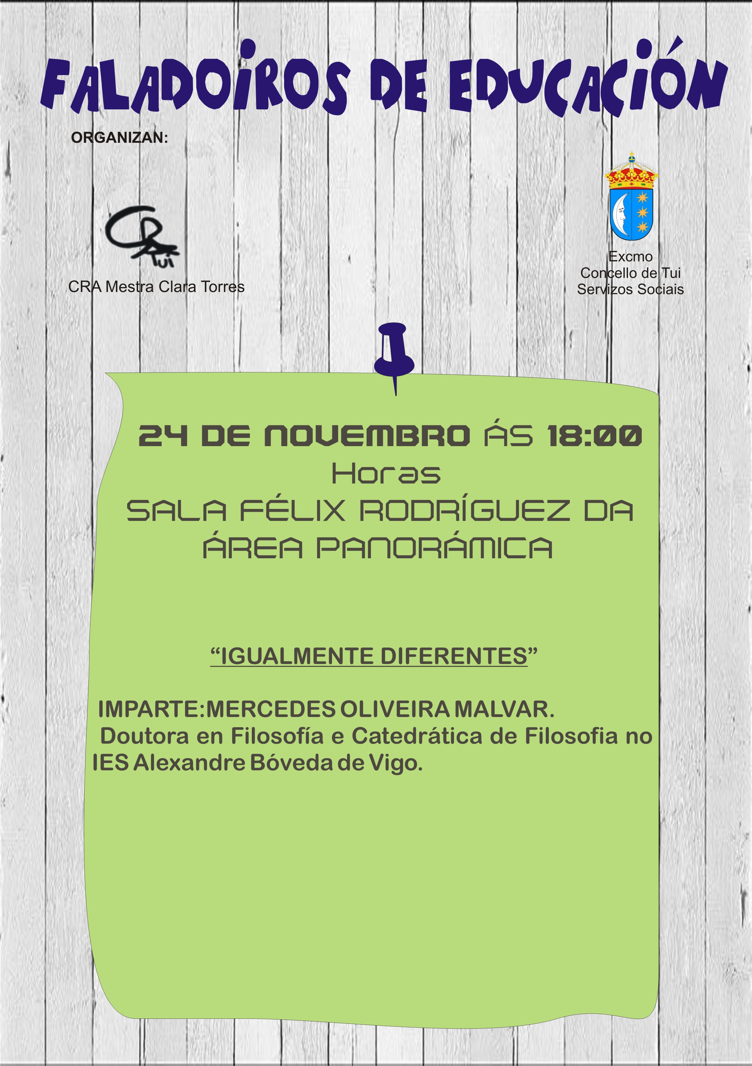 Este xoves, 24 de novembro, terá lugar o segundo “Faladoiro en Educación” organizado polo Concello de Tui e o Colexio Rural Agrupado Mestra Clara Torres.