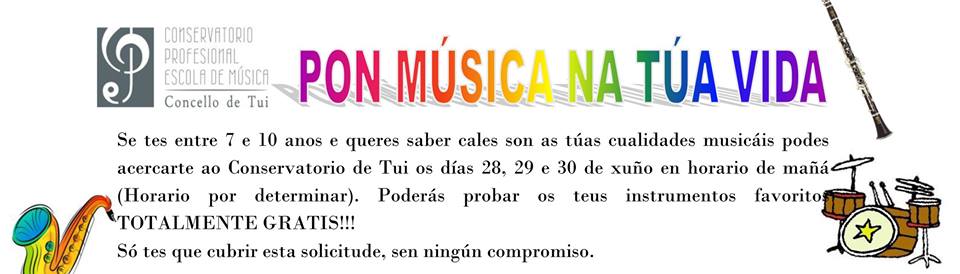 O Conservatorio Profesional de Música de Tui e a Escola de Música de Tui, en colaboración cos centros educativos tudenses, promoven o programa “Pon música na túa vida”. Vai...