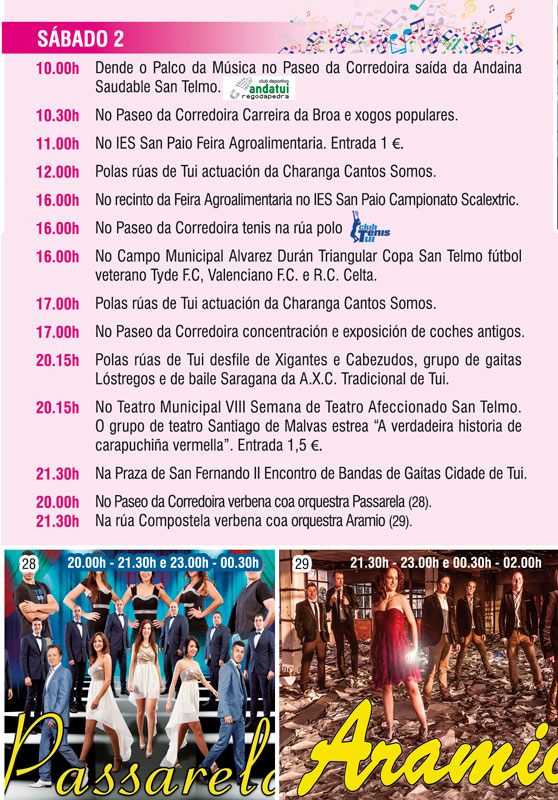 Mañá sábado, 2 de abril, o deporte, a música e o teatro centran as programación prevista nas festas de San Telmo 2016.