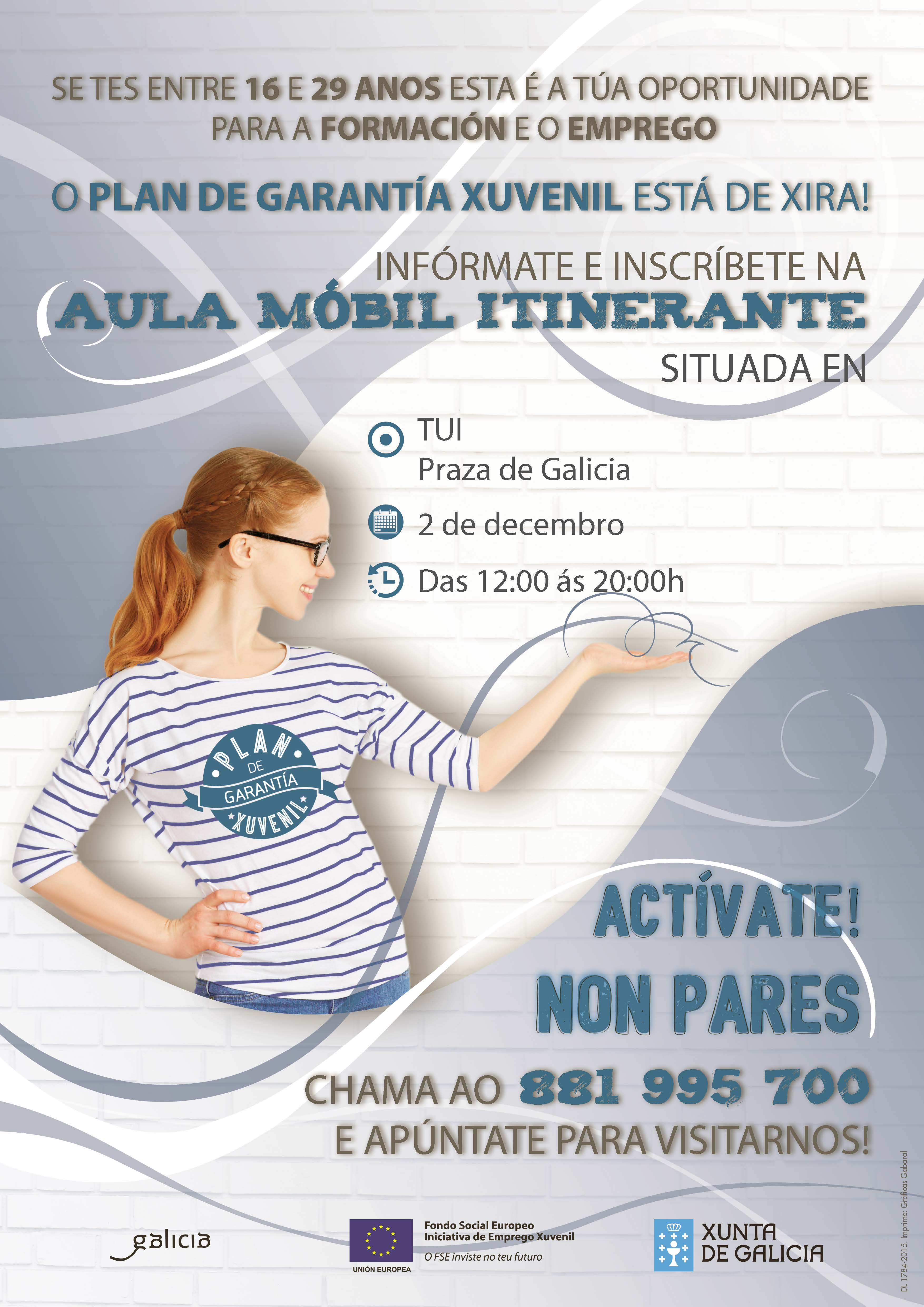 Este mércores, 2 de decembro, estará en Tui a Aula Móbil Itinerante do Plan de Garantía Xuvenil da Xunta de Galicia. A Aula estará situada no Paseo da Corredoira de 12 a 20h. Os...