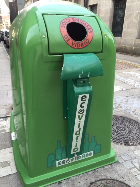 Martes, 18 de agosto de 2015. Os contedores de vidro do centro de Tui veñen de ser renovados e os eu número ampliado, o situar un novo contedor na Praza de Galicia.