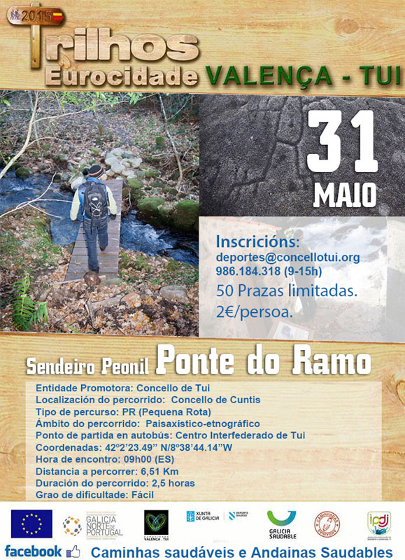 O domingo 31 de maio, a Eurocidade Tui-Valença organizará, dentro do IV Circuito de Andainas/Trilhos Saudables, a “Andaina Sendeiro Peonil Ponte do Ramo”. A saída será ás 09.00...