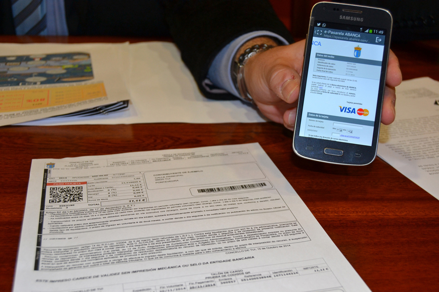 Xoves, 16 de outubro de 2014. Dende este luns os recibos municipais do Concello de Tui pódense pagar ao través dun código QR impreso no propio recibo. Ao escanear o código cun...