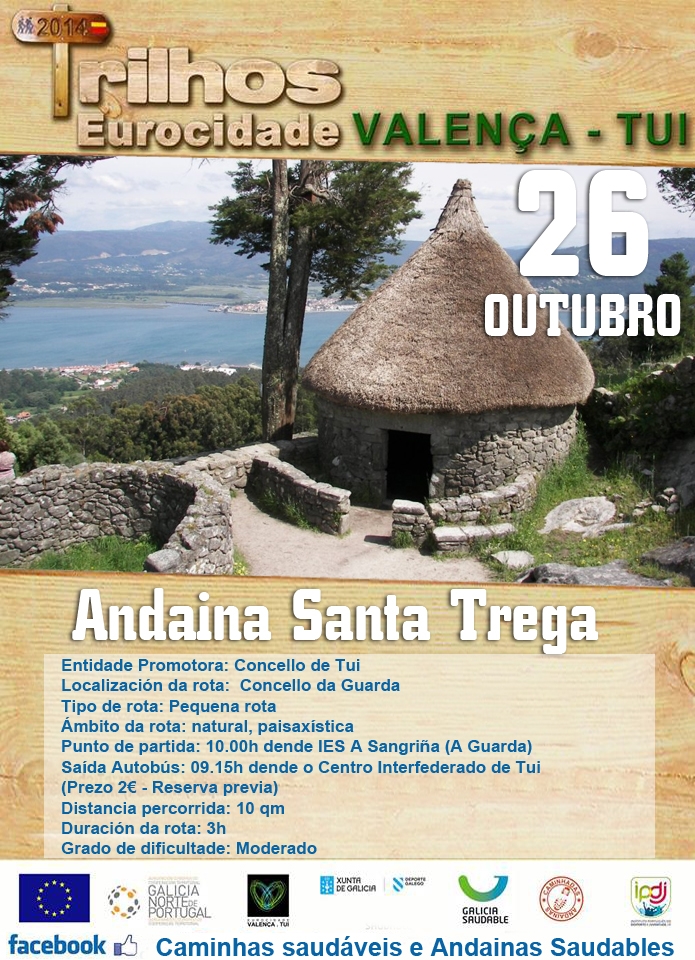 Luns, 20 de outubro de 2014. Este domingo 26, dentro do programa de andainas saudables da Eurocidade Tui-Valença, realizarase a andaina "Santa Trega" no Concello da Guarda. Será...
