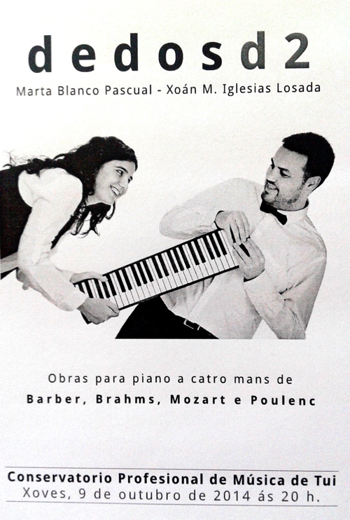 Martes, 7 de outubro de 2014. Este xoves, 9 de outubro, ás 20h a sala de audicións do Conservatorio Profesional e da Escola de Música de Tui acollerá o concerto inaugural do...