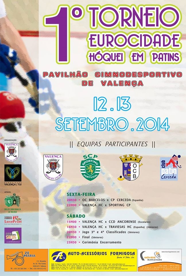 Mércores, 10 de setembro de 2014. Este venres 12 e sábado 13 de setembro terá lugar, no pavillón municipal de Valença, o I Torneo Eurocidade de Hockey Patíns, organizado pola...