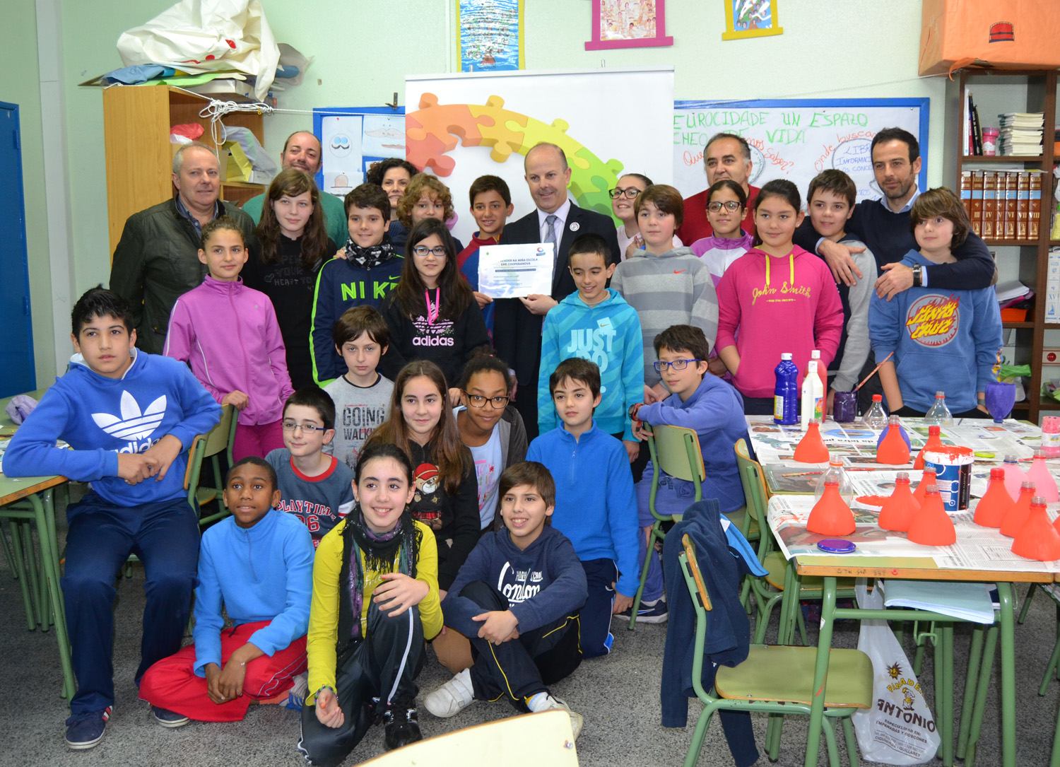 Martes, 1 de abril de 2014. O alcalde de Tui e deputado provincial, Moisés Rodríguez, fixo entrega onte ao presidente da cooperativa escolar Mister Shop do CEIP nº1 de Tui, Julián...