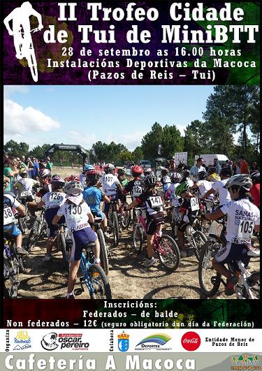 Xoves, 26 de setembro de 2013. Este sábado, dende as 16.00 horas, nas instalacións deportivas da Macoca, en Pazos de Reis, celebrarase o “II Trofeo Cidade de Tui de Mini BTT”, que...
