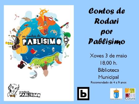 A Biblioteca Pública Municipal de Tui acolle mañá xoves 3 de maio ás 18,00 horas unha sesión de contacontos a cargo de Pablisimo...