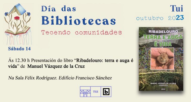 Este sábado, 14 de outubro, terá lugar a presentación do último libro do tudense Manuel Vázquez de la Cruz titulado “Ribadelouro; terra e auga é vida” recentemente editado e que...