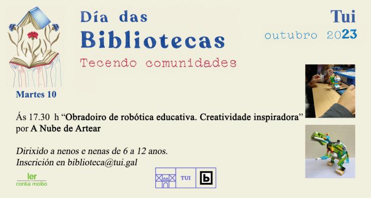 Mañá martes, 10 de outubro, continua o programa de actividades “Outubro, mes da Biblioteca” cunha nova cita, neste caso é un Obradoiro titulado “Robótica educativa. Creatividade...