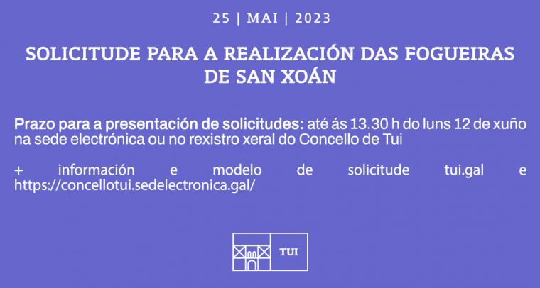 Até o luns 12 de xuño ás 13.30 h pódense presentar as solicitudes para a realización de Fogueiras de San Xoán no rexistro xeral do concello ou a través da sede electrónica.