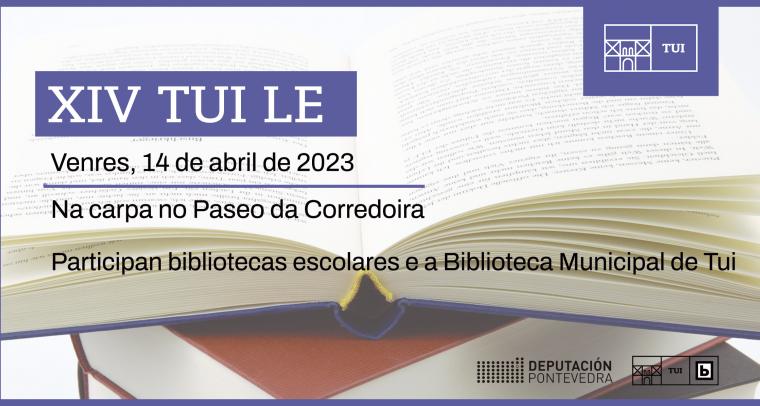 Maña venres pola mañá celebrarase na carpa situada no Paseo da Corredoira o XIV Tui Le. Esta iniciativa está promovida pola Biblioteca Pública Municipal de Tui xunto coas...