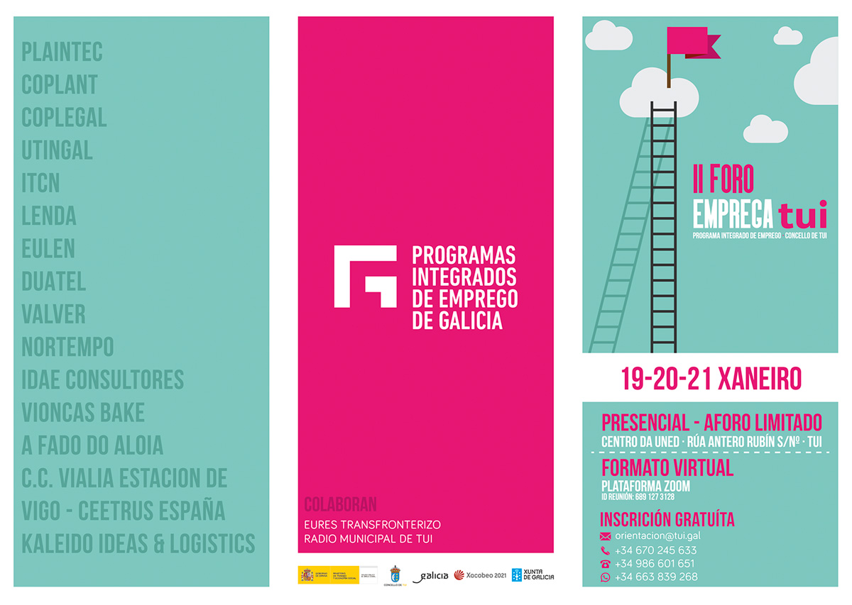 Do 19 ao 21 de xaneiro vaise celebrar o II Foro de Emprego Emprega Tui. Está organizado polo Programa Integrado de Emprego do Concello de Tui en colaboración con distintas entidades e empresas.
