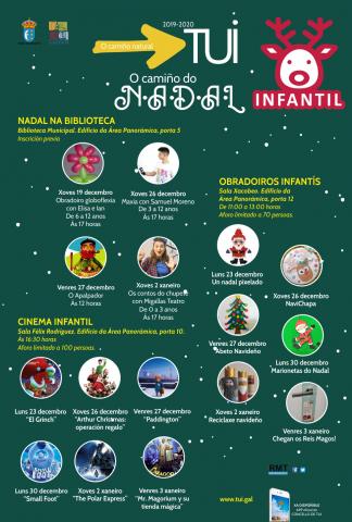 O Nadal na Biblioteca, obradoiros infantís, cinema... son algunhas das propostas que dentro da programación "Tui, o Camiño do Nadal, o camiño natural" se van celebrar dirixidas a nenas e nenos.