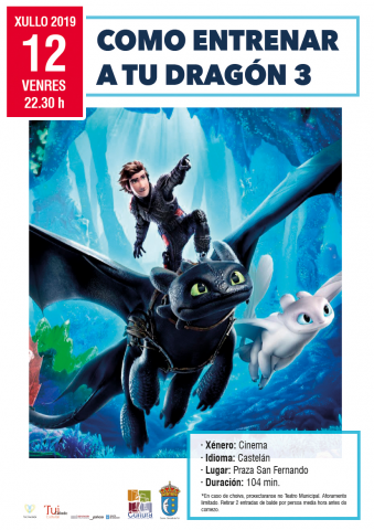 O venres, 12 de xullo, ás 22.30 h na praza de San Fernando proxéctase a película “Cómo entrenar a tu dragon 3”