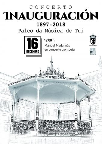 O domingo, 16 de decembro, ás 19h terá lugar o concerto inaugural das obras de rehabilitación do Palco da Música no Paseo da Corredoira. Este concerto correrá a cargo do trompetista Manuel Madarnás acompañado dun quinteto de metais e percusión