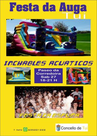 O sábado, 27 de xullo, sábado celébrase en Tui a Festa da Auga. Será de 18 a 21 h no Paseo da Corredoira. Haberá inchables acuáticos e festa da escuma.
