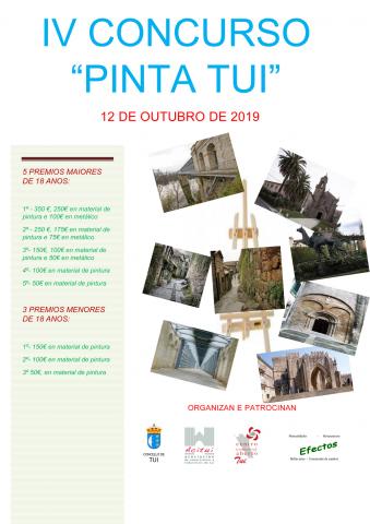 O próximo sábado, 12 de outubro, celebrarase en Tui o IV Concurso de Pintura “Pinta Tui”, organizado polo Concello de Tui xunto a ACITUI e Efectos.