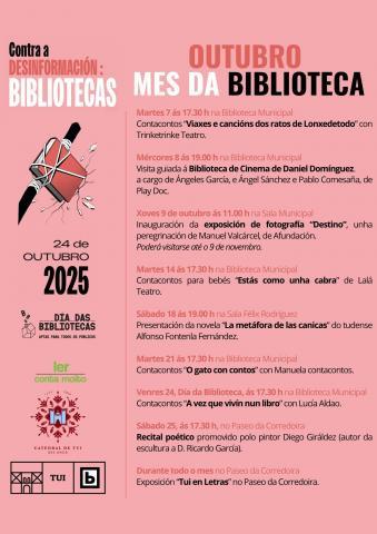 Nove actividades conforman o programa co que a Biblioteca Municipal de Tui vai celebrar o “Mes da Biblioteca” coincidindo co Día da Biblioteca que se celebra o 24 de outubro.