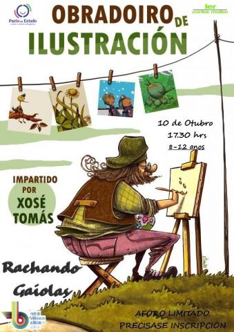 A Biblioteca Pública Municipal de Tui acolle o xoves, 10 de outubro, ás 17.30 h un obradoiro de ilustración a cargo de Xosé Tomás. Esta actividade forma parte do programa organizado para conmemorar o Día da Biblioteca, que se celebra o 24 de outubro. Xosé Tomás é un dos referentes da ilustración en Galicia. Ilustrador, humorista gráfico, e profesor no Baixo Miño o seu campo de traballo abrangue diversos ámbitos pero a maioría da súa obra sitúase na ilustración para obras de literatura infantil e xuvenil.