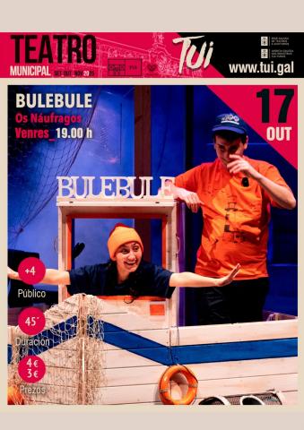 O venres 17 de outubro, ás 19.00 horas Os Naúfragos Teatro representarán no Teatro Municipal de Tui “Bulebule”. Un espectáculo sobre a presenza da muller no mar, a diversidade e o TDAH -Trastorno do Déficit de Atención con Hiperactividade-. A obra explora, dun xeito amable, os camiños da igualdade destacando o esforzo das mulleres por derrubar as barreiras que lles impiden acceder a determinadas profesións.