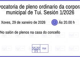 A corporación municipal de Tui celebrará o xoves, 29 de xaneiro, ás 20 h pleno ordinario coa seguinte orde do día:
