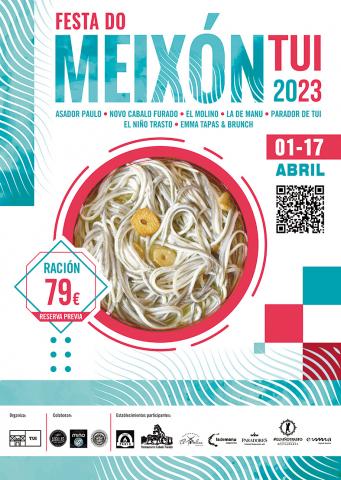 Do 1 ao 17 de abril celebrarase en Tui a Festa do Meixón. A nova edición deste evento gastronómico volverase a celebrar en distintos restaurantes da cidade: Asador Paulo, El Molino, El Niño Trasto , Emma Tapas&Brunch, La de Manu, O Novo Cabalo Furado e Parador de Tui. As racións do meixón do Miño terán un prezo de 79 euros, previa reserva.