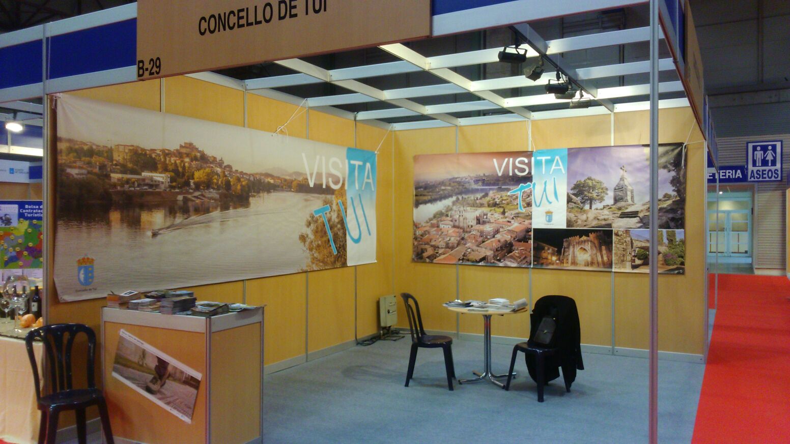 Con posto propio duns 10 metros cadrados promociónanse os atractivos turísticos da cidade dende o río Miño ao Monte Aloia e o conxunto histórico, xunto á gastronomía, a cultura, o deporte... Fotografías de gran tamaño dunha vista da cidade dende Valença, da cruz do Monte Aloia, da Catedral e ou das rúas empedradas do conxunto histórico reclaman a atención do visitante. Folletos turísticos, información da oferta hostaleira e de restauración, ou do Camiño Portugués de Santiago achegan aos que pasen pola feira as claves para visitar Tui.
